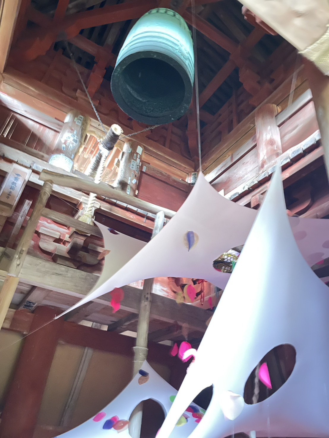 京都のSさんから、天皇五代に仕えた武内宿禰ゆかりの古刹、滋賀県の長命寺をご紹介いただきました。国の重要文化財に指定されている鐘楼が有名ですが、鐘楼の中はアートで彩られていました。