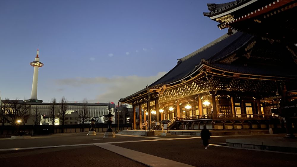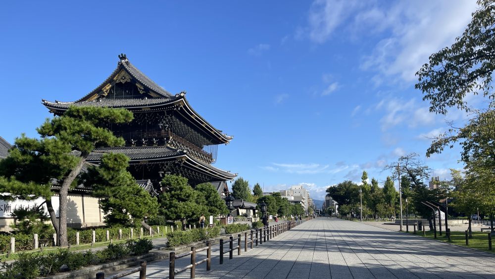 京都には数多くの名刹が立ち並びますが、その中でも「最も京都駅に近い大寺院」といえるのが東本願寺です。新幹線で京都駅に到着すると、まず目に入るのは駅前にそびえる京都タワー。そのすぐ裏手に広がる荘厳な伽藍が東本願寺で、駅の地下街からもアクセスできるため、観光や帰路の「ちょい寄り」にも便利な立地です。