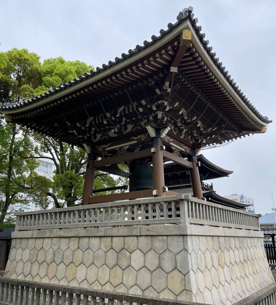 大須商店街の中心に溶け込む万松寺は、織田信長ゆかりの寺。白竜ショーや信長からくり人形で知られる“ハイテク寺院”です。梵鐘は本堂屋上にあり、普段は非公開。