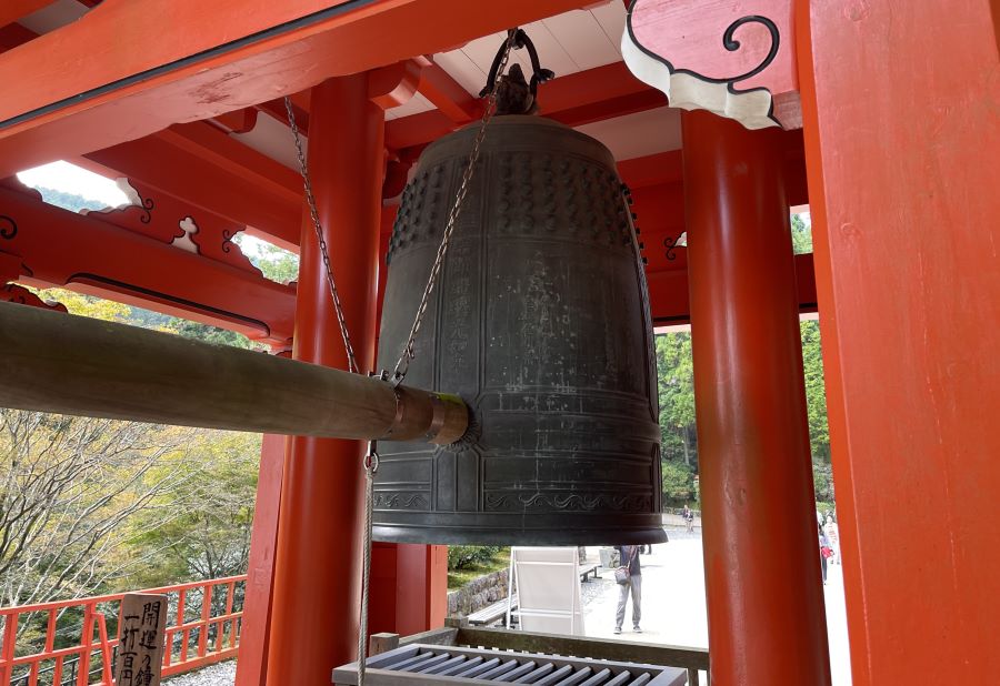 この鐘の大きな特徴は、参拝者自身が撞くことができる鐘である点です。1打100円の志納で誰でも撞鐘できる仕組みになっており、参拝者の多い東塔エリアでは、日中ほぼ途切れることなく鐘の音が響いています。